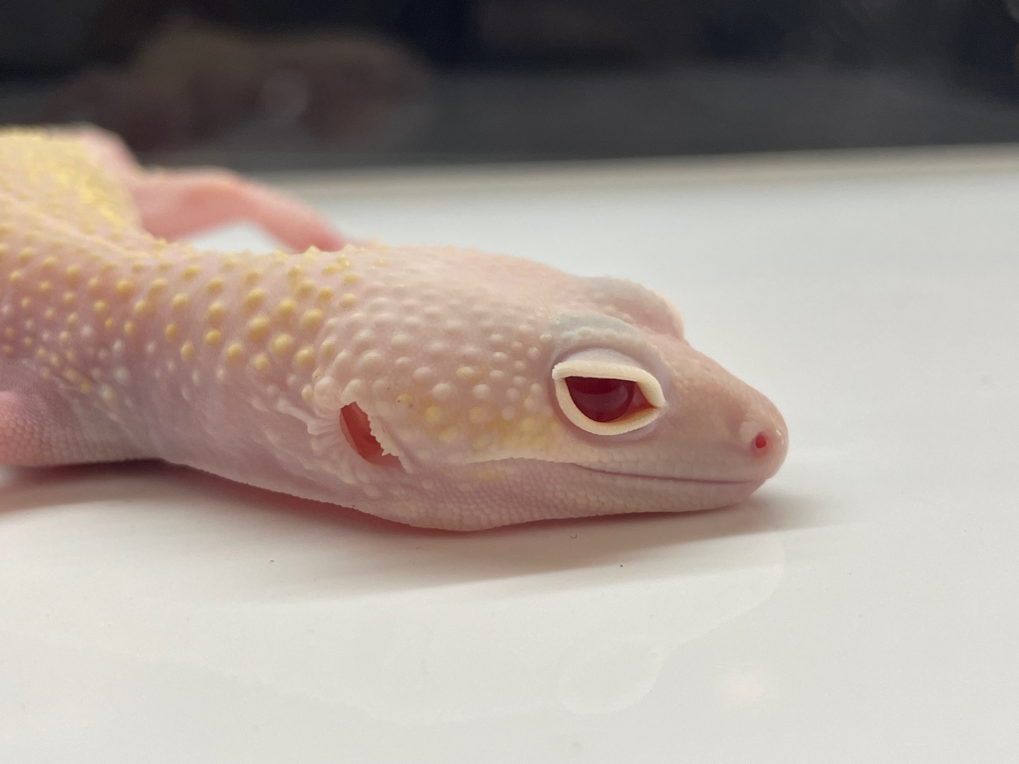 白い体色とベルアルビノとエクリプスによる真っ赤な眼が特徴です。