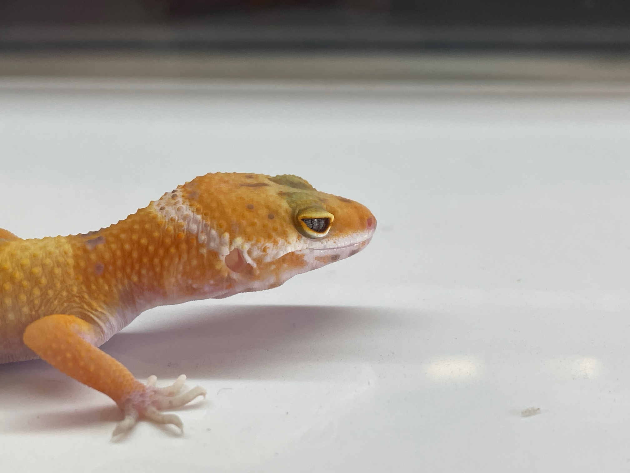 最も一般的なアルビノ品種であるトレンパーアルビノですが、この個体は更にタンジェリンが加わっているといっても差し支えない発色です。