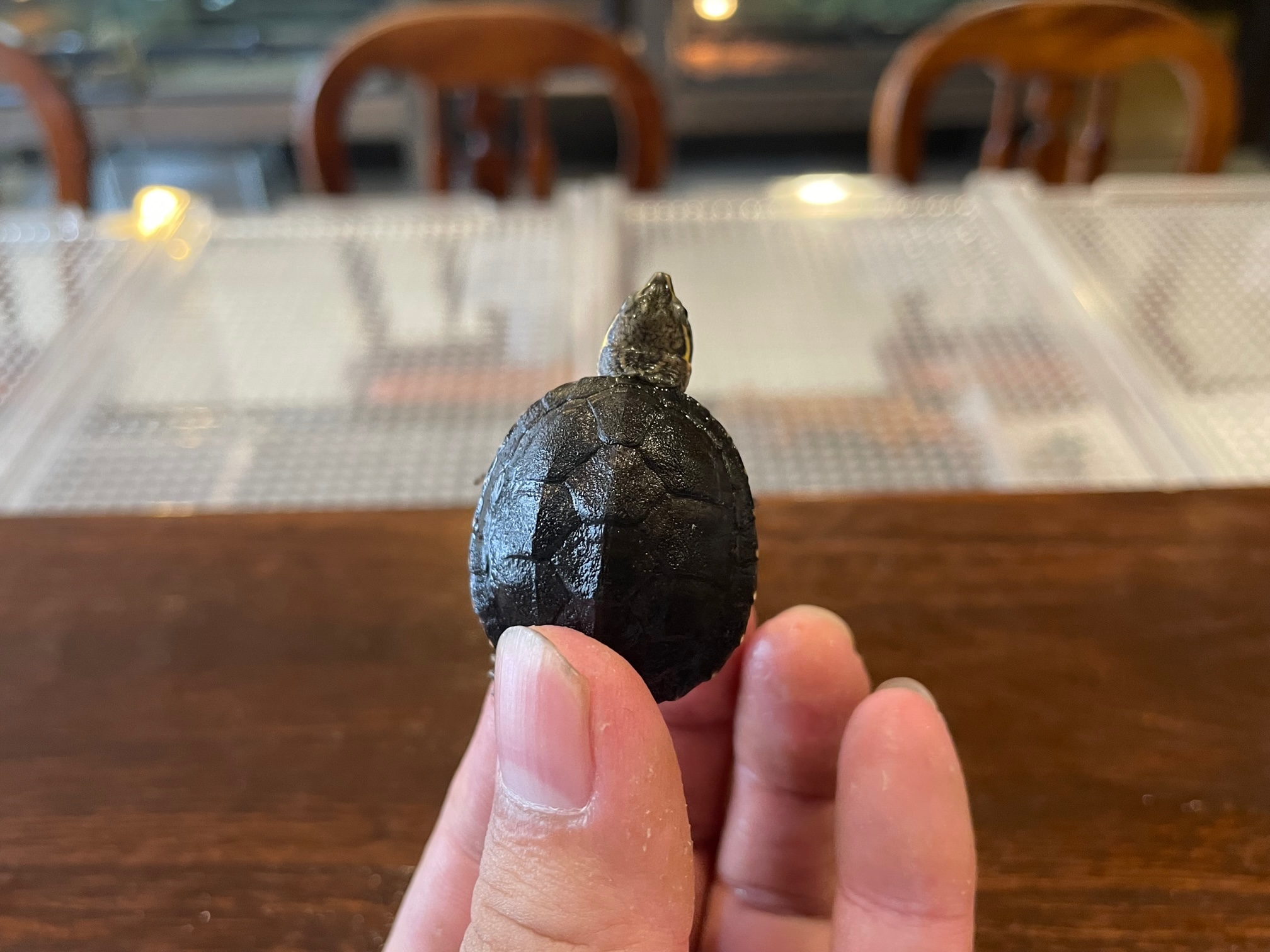最大甲長は約15㎝で大きくならない水棲ガメの代表的な立ち位置にいます。