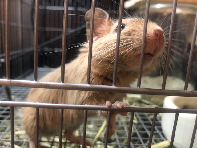 前述の通り立体的な運動を好みます。床面積は45*50㎝程度から、高さは60㎝程度必要です。材質がプラやアクリルのものではすぐに齧って突破されてしまいますので齧っても擦り減らない材質のケージがおすすめです。