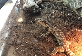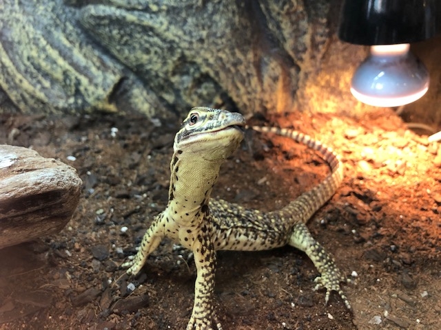 基本的に地上性のモニターですので大きすぎる水場などは必要ありませんが、非常に活発です。広い床面積が確保できるケージが必要となります。