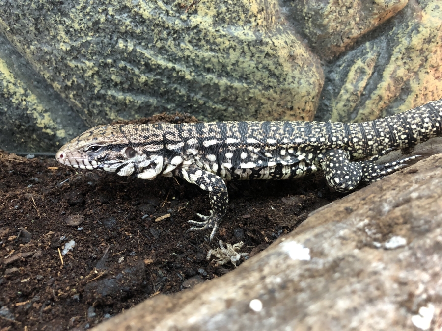 B&Wテグーには南アメリカ北部に生息するキタテグーと南部に生息するミナミテグーがいます。顔の鱗の枚数で判別することができます。